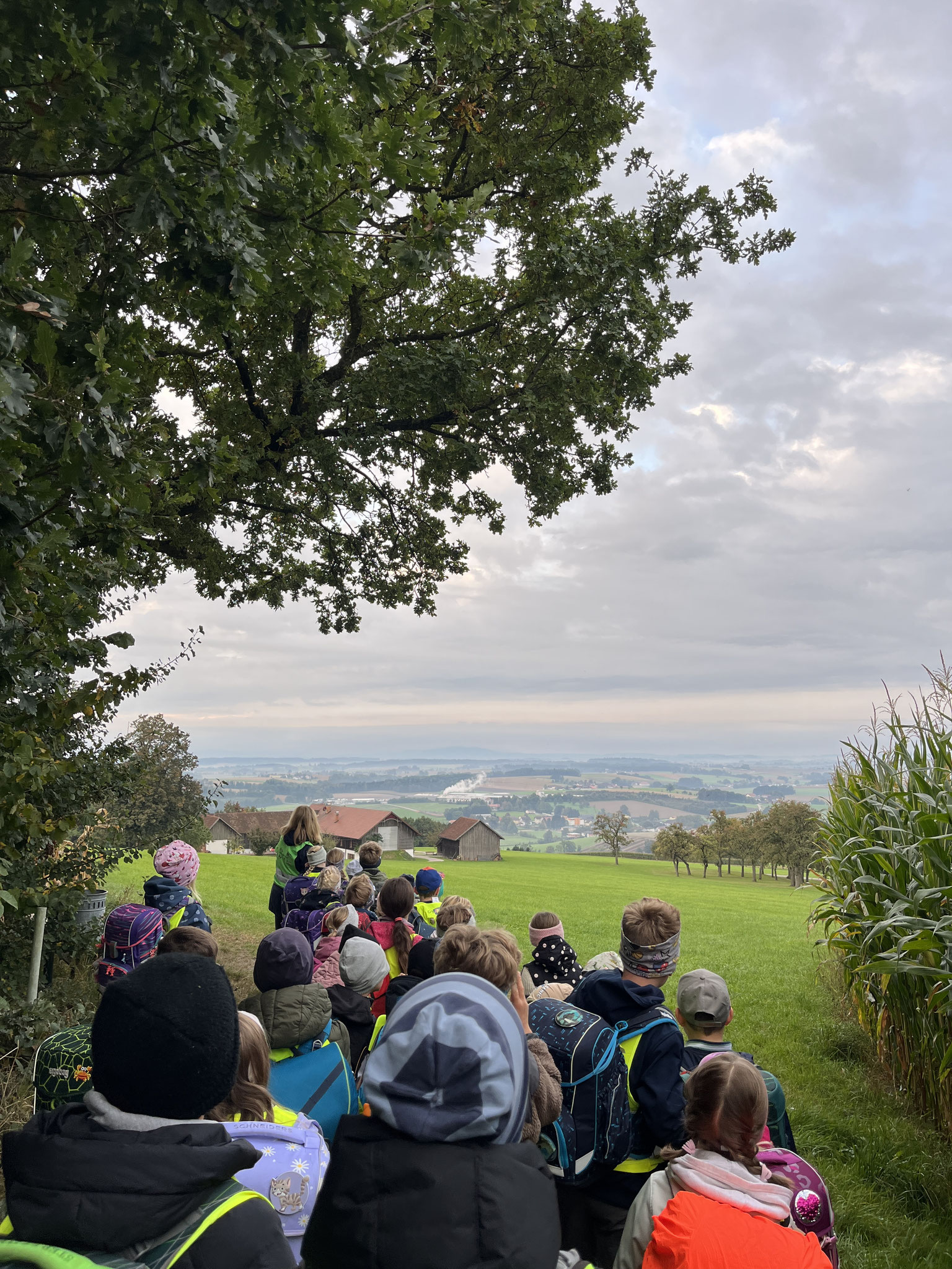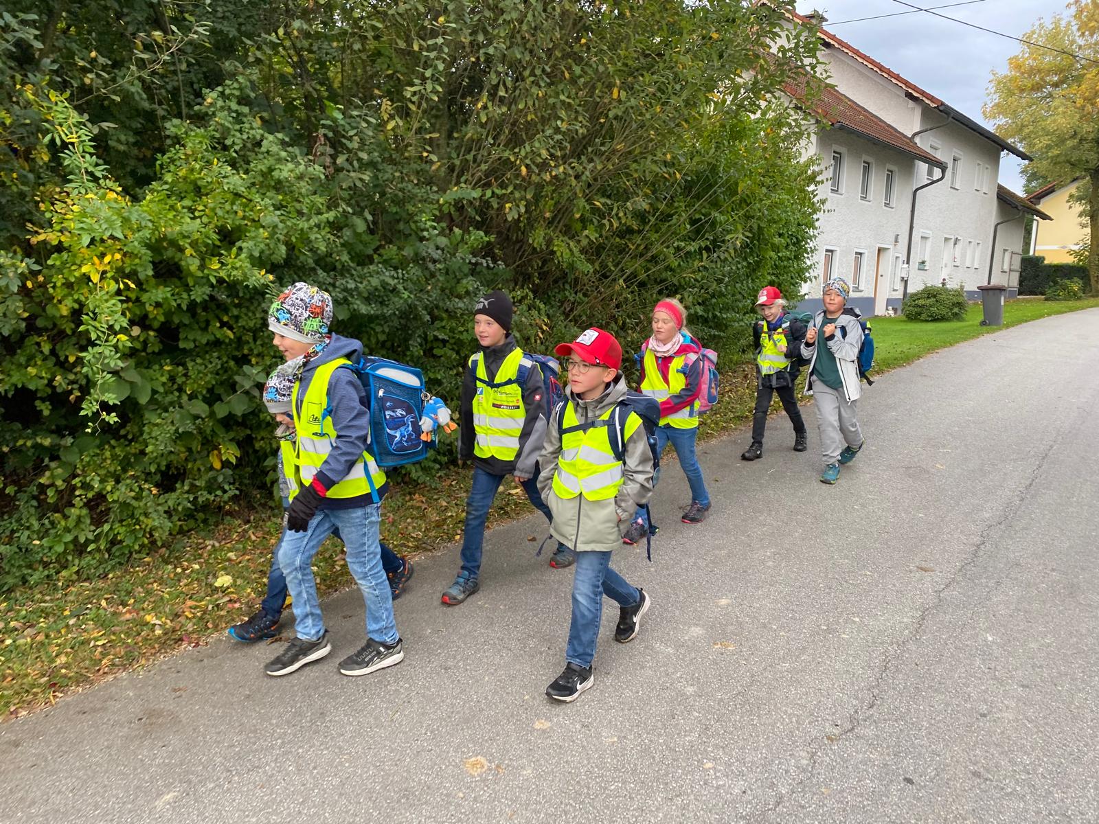 - Am Donnerstag, dem Aktionstag, machen wir eine gemeinsame Wanderung. Zur Jausenzeit überrascht uns der Elternverein mit einer Jause und einem Picknick im Schulgarten – danach gibt es Unterricht.