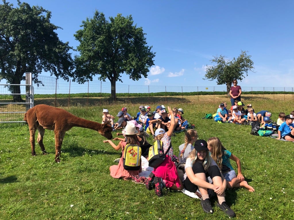 Dort erwarteten uns Alpakas. Unsere Werklehrerin hat uns viele Informationen über diese scheuen, besonderen Tiere gegeben. Das war ein besonderes Erlebnis.