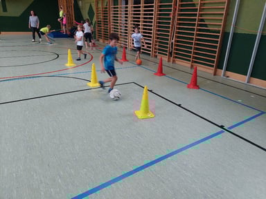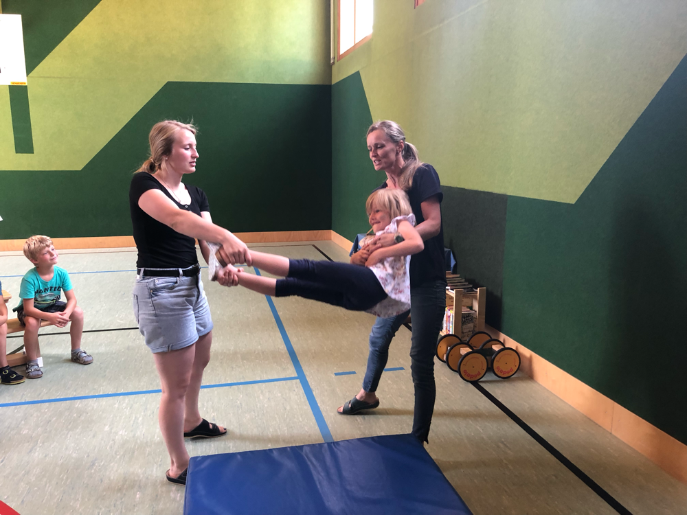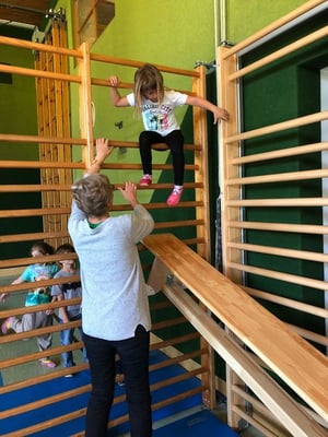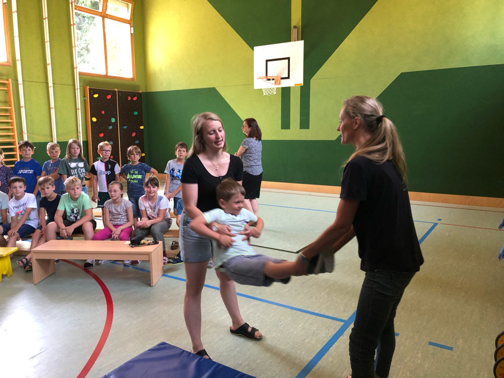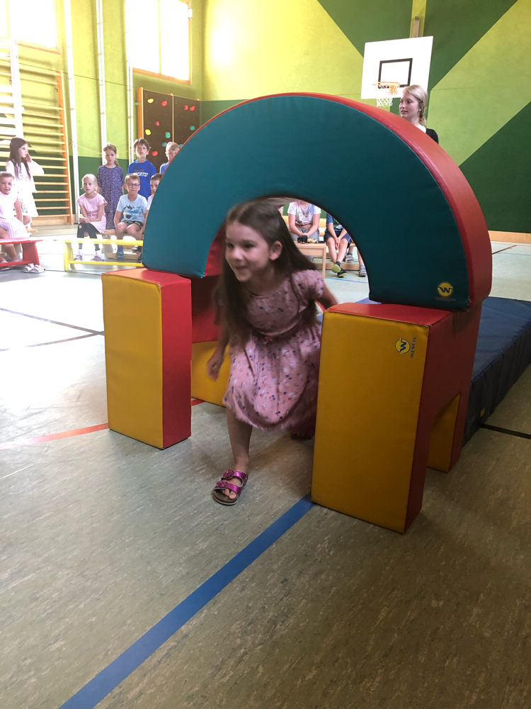 Fit mach mit - Bei einem Bewegungsparcours in der Turnhalle haben die Kinder der 1. und 2. Klasse viel Spaß!
