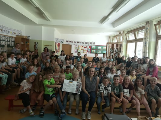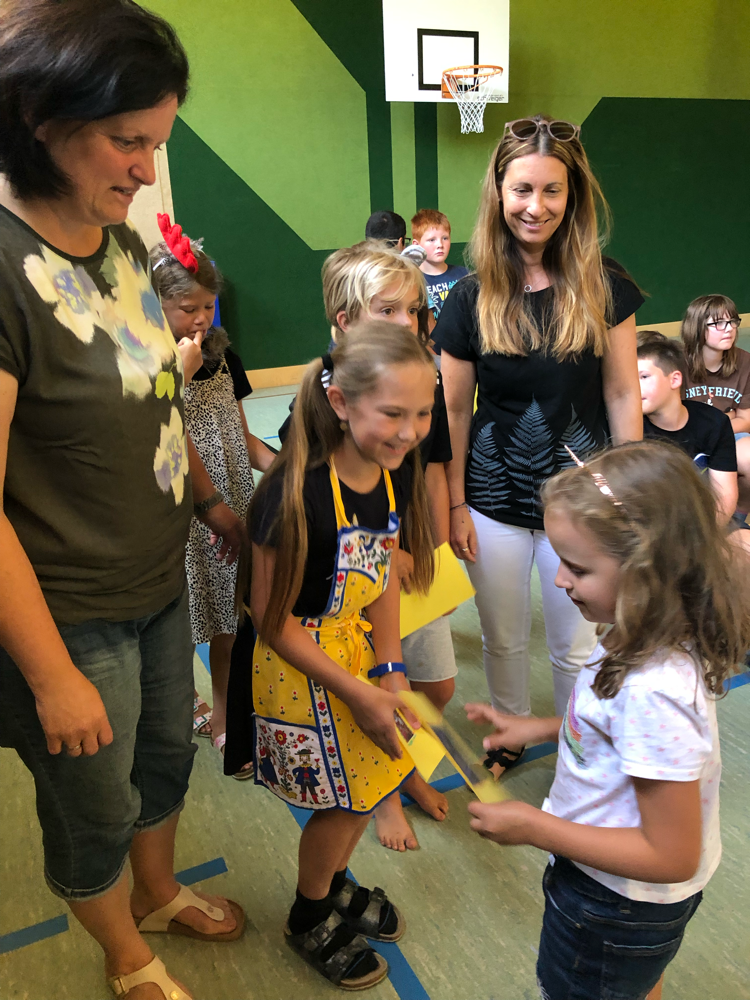 Wir Kinder der 4. Klasse pflanzten gemeinsam mit den Gemeindearbeiterinnen einen Kastanienbaum. Somit verewigen wir uns an der Schule, auch wenn wir diese heuer verlassen.