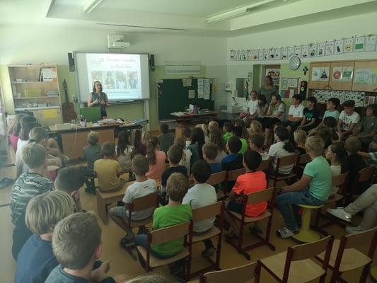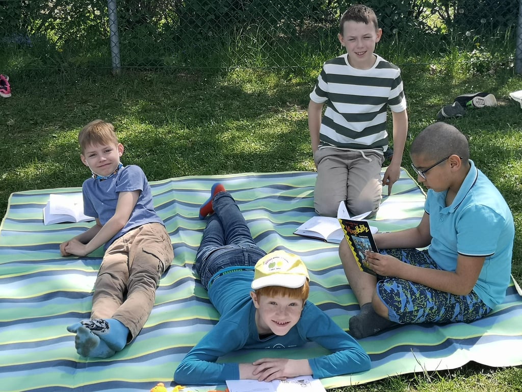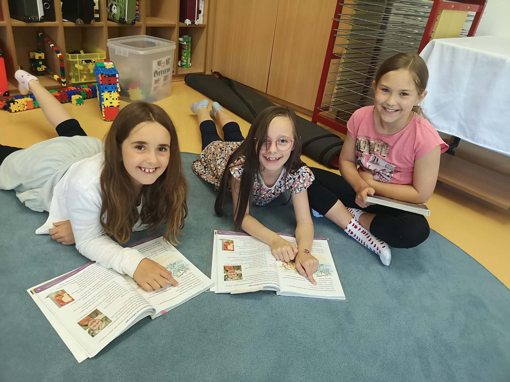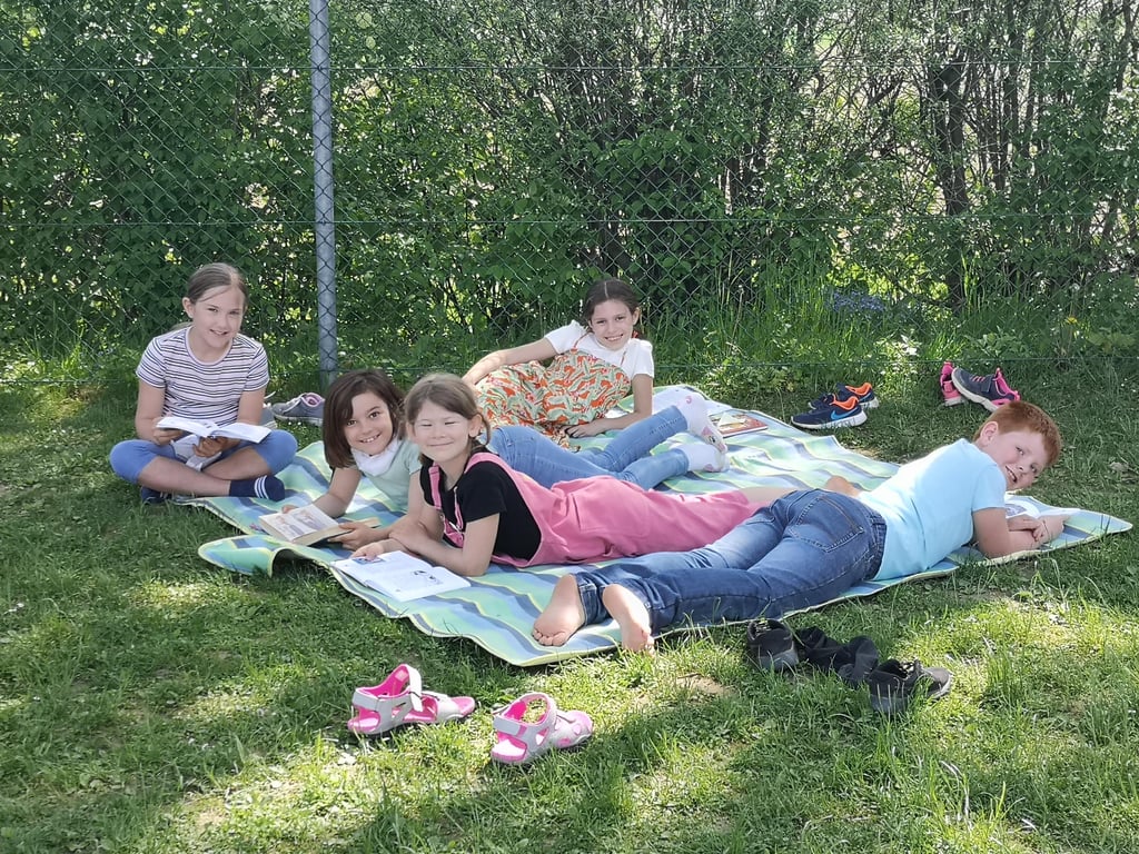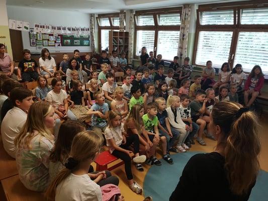 Die Kinder der 4. Klasse besuchten ihre Paten in der 1.Klasse. Gemeinsam übten wir das Lesen. Anschließend besuchten uns noch die Schildkröten von Isabell und Frau Hörmann.