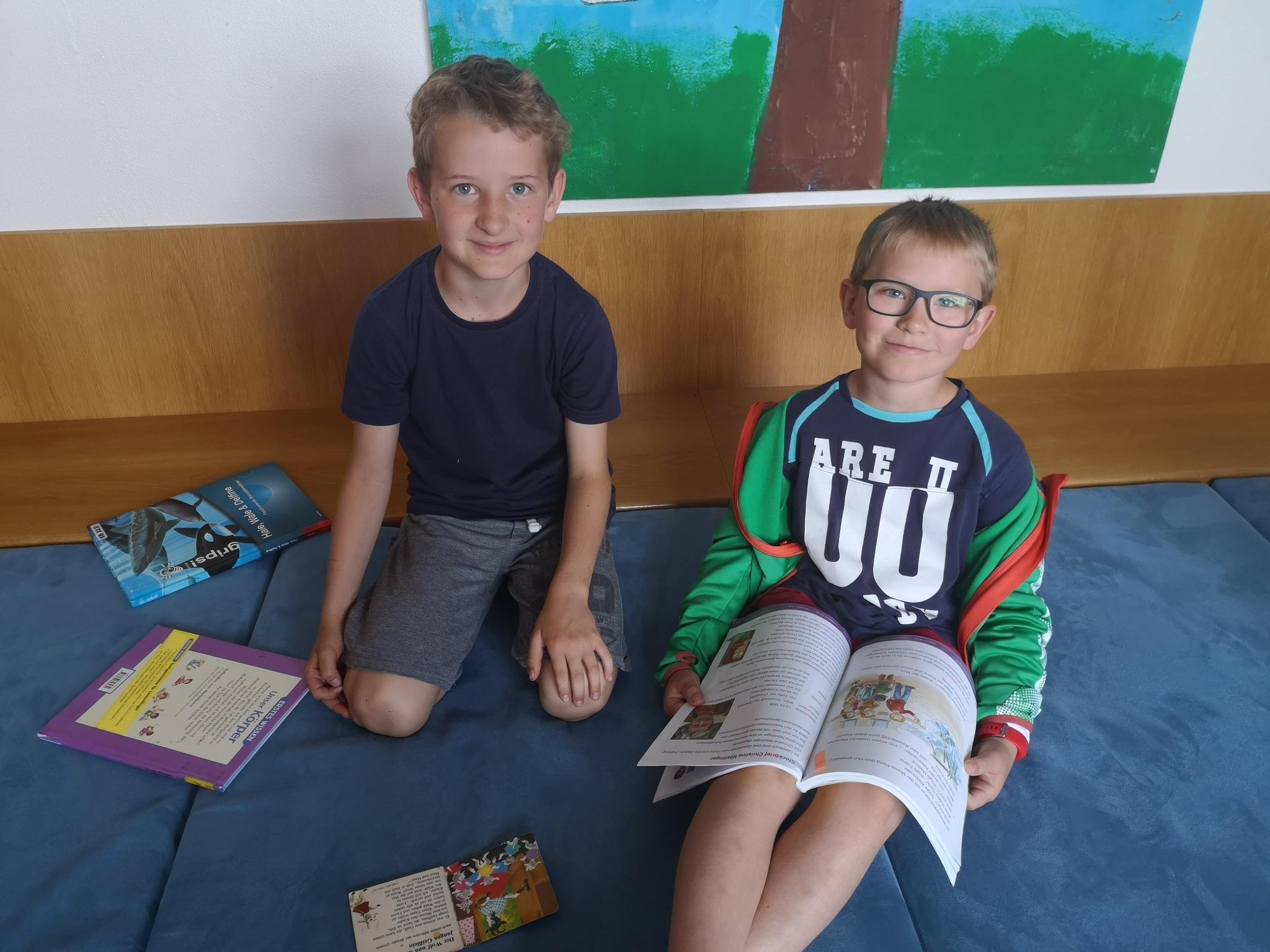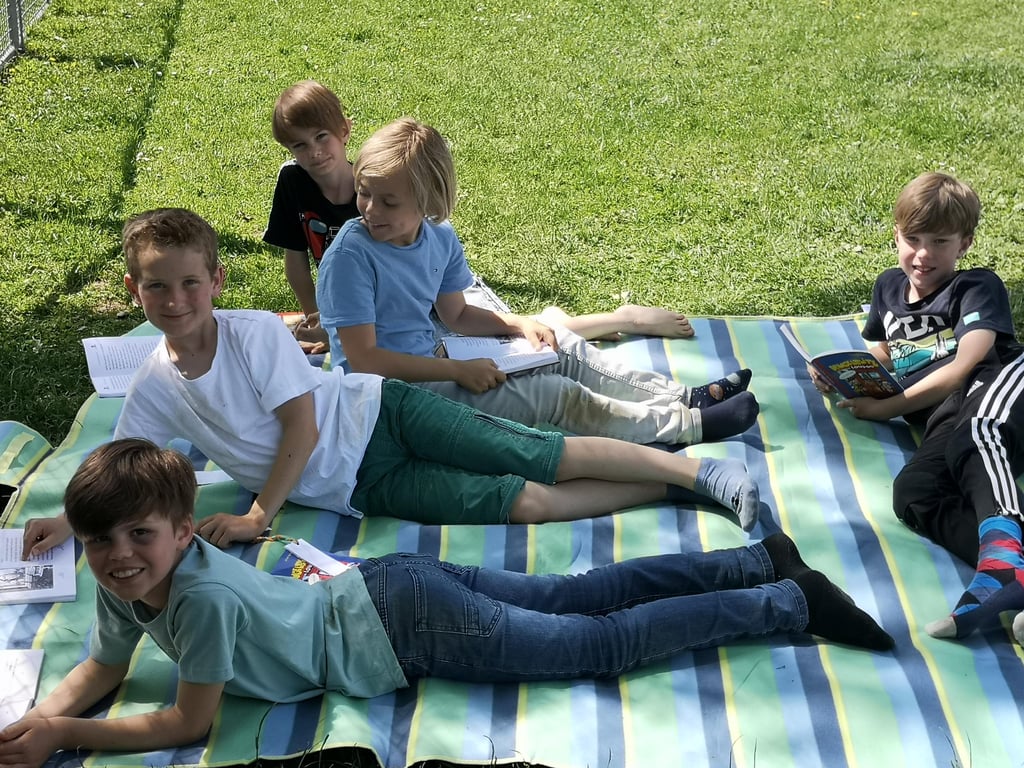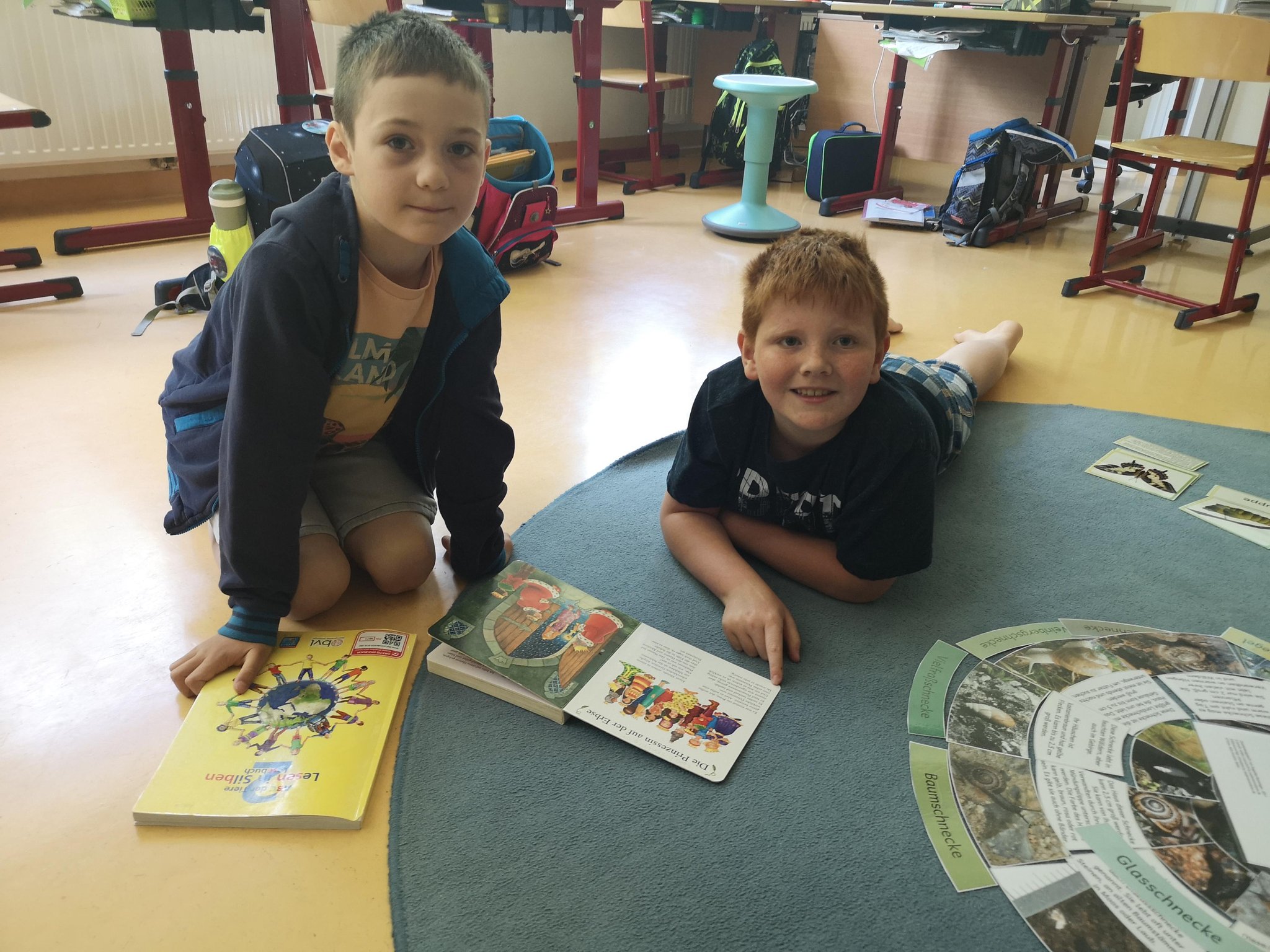 Die Kinder der 4. Klasse besuchten ihre Paten in der 1.Klasse. Gemeinsam übten wir das Lesen. Anschließend besuchten uns noch die Schildkröten von Isabell und Frau Hörmann.