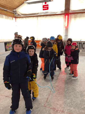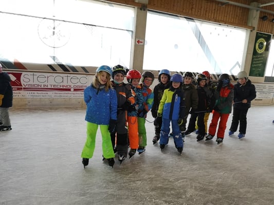 Die gesamte Schule war in der Eislaufhalle in Peuerbach Eislaufen. Die Kinder hatten viel Spaß.