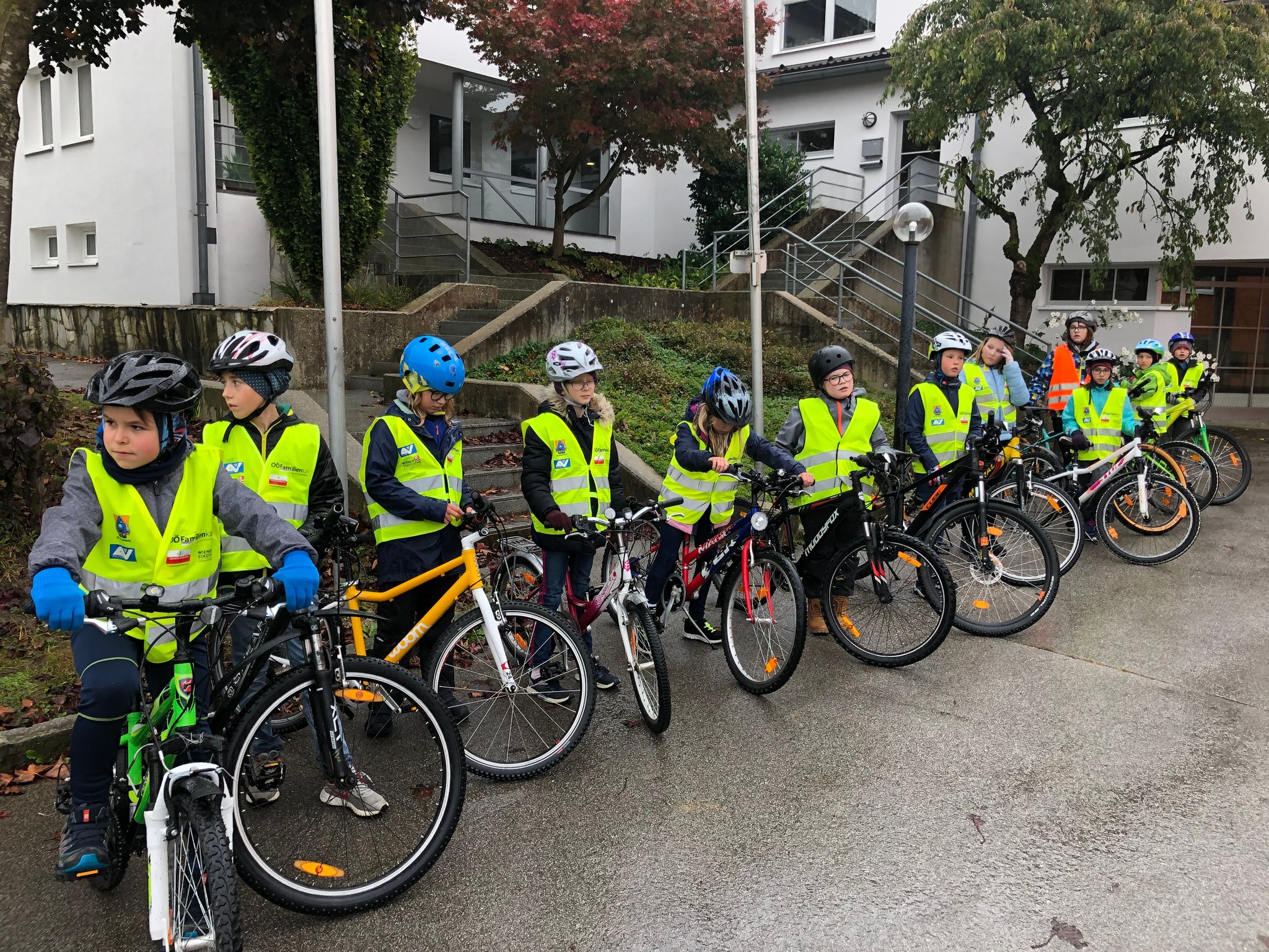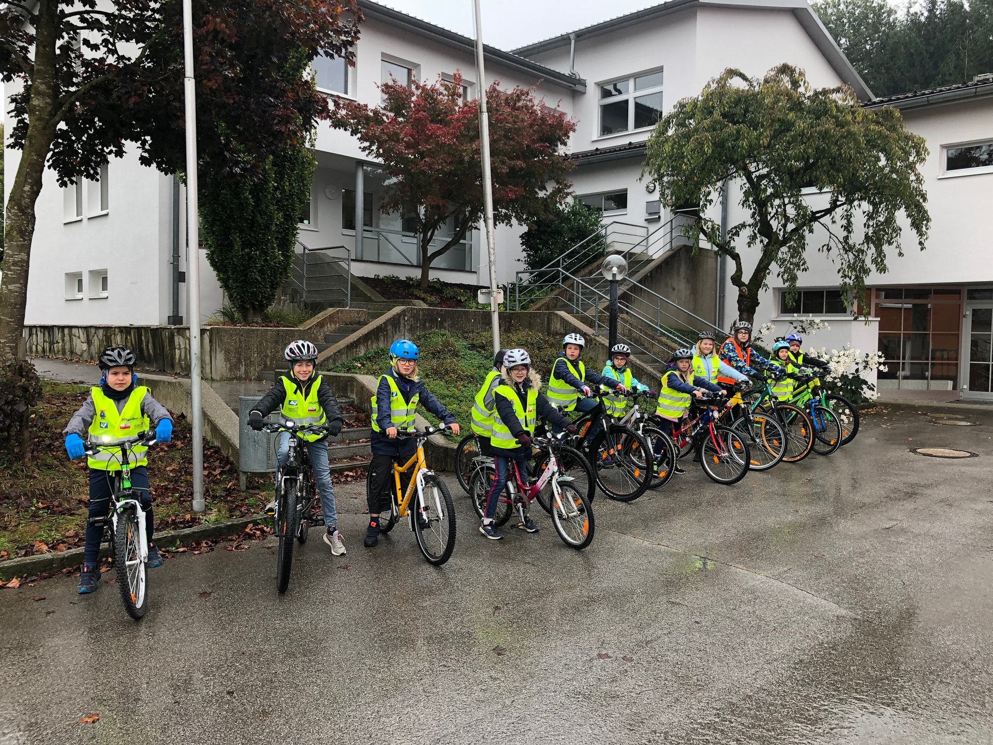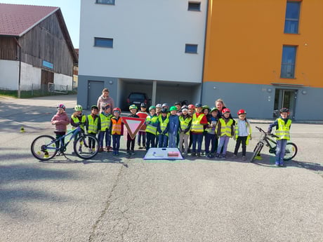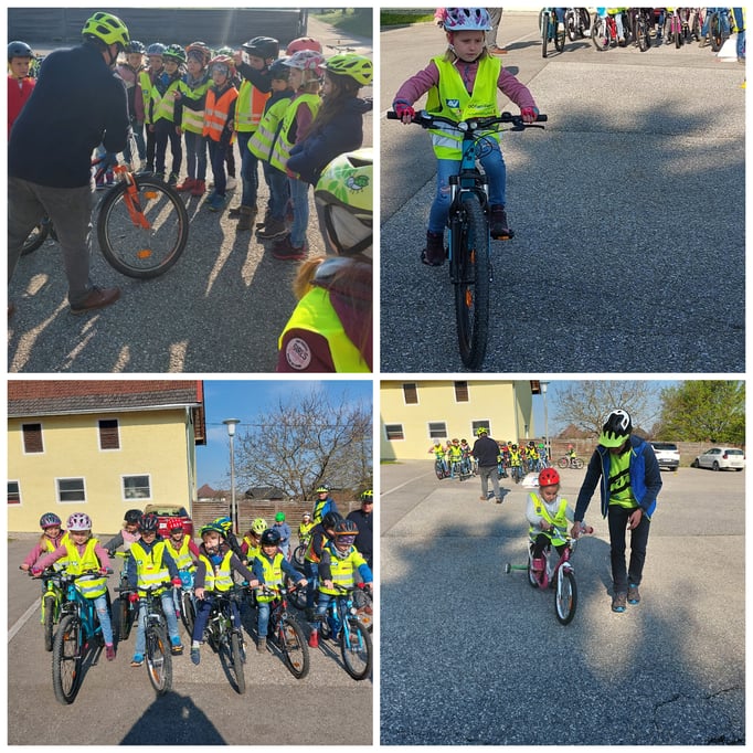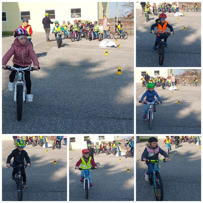 Endlich können wir mit dem Rad zur Schule fahren. Wir sind sehr stolz, dass wir die Radfahrprüfung bestanden haben.