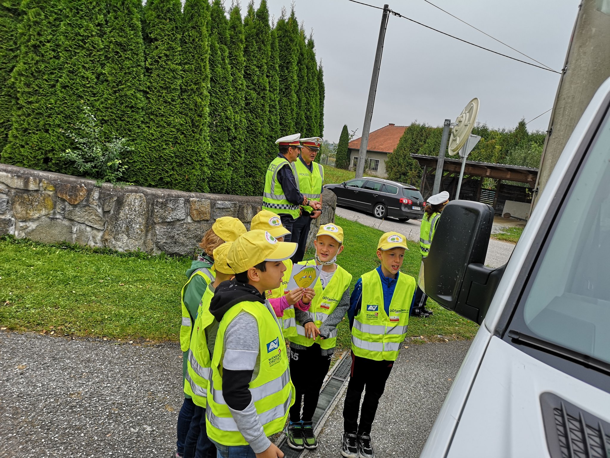 Wir bekamen Schutzwesten und reflektierende Schultaschenanhänger. Jetzt sind wir für alle gut sichtbar und sicher unterwegs!