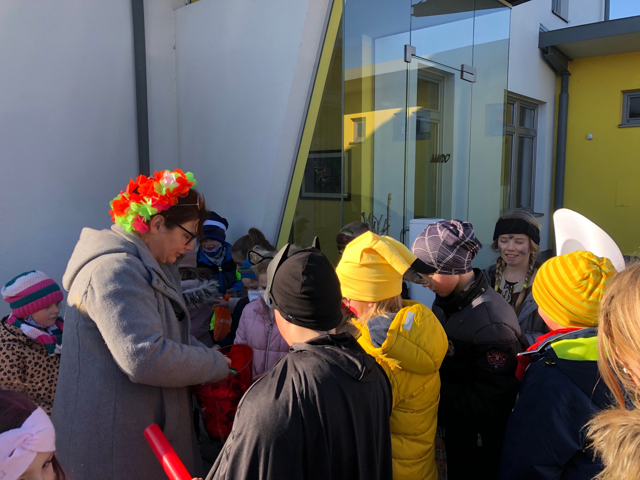 Die Kinder bekamen viele Süßigkeiten und hatten gr0ßen Spaß beim Faschingsumzug.