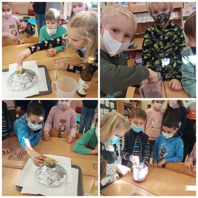 Heute haben wir in der 1. Klasse einen Vulkan gebaut und uns einen "echten" Vulkanausbruch angesehen. Die kleinen Forscher*innen haben natürlich alles am Forschungsprotokoll festgehalten.