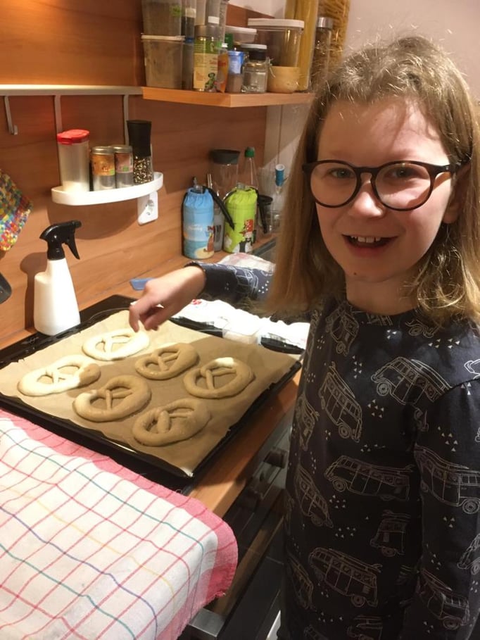 Felix, Miriam und Andreas haben zuhause Brezen gebacken und in der Schule verkauft. Die 290€ aus dem Erlös werden gespendet. DANKE!