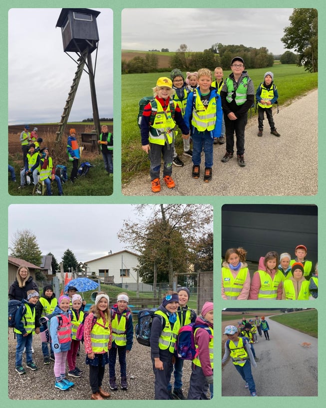 - Am Donnerstag, dem Aktionstag, machen wir eine gemeinsame Wanderung. Zur Jausenzeit überrascht uns der Elternverein mit einer Jause und einem Picknick im Schulgarten – danach gibt es Unterricht.